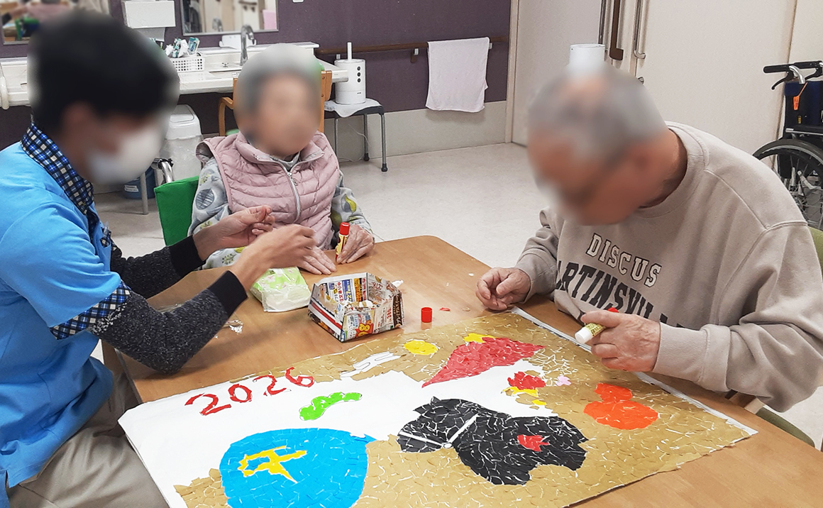 新年を迎えたので、今年の干支をテーマにちぎり絵を皆様一緒に作られました☆ 完成がとても楽しみです☆ そして今月のお楽しみ食事会はちらし寿司を召し上がって頂きました☆ 酢飯をご利用者様一緒に混ぜて頂いたり、楽しい時間を過ごして頂く事が出来ました♪