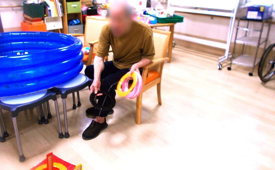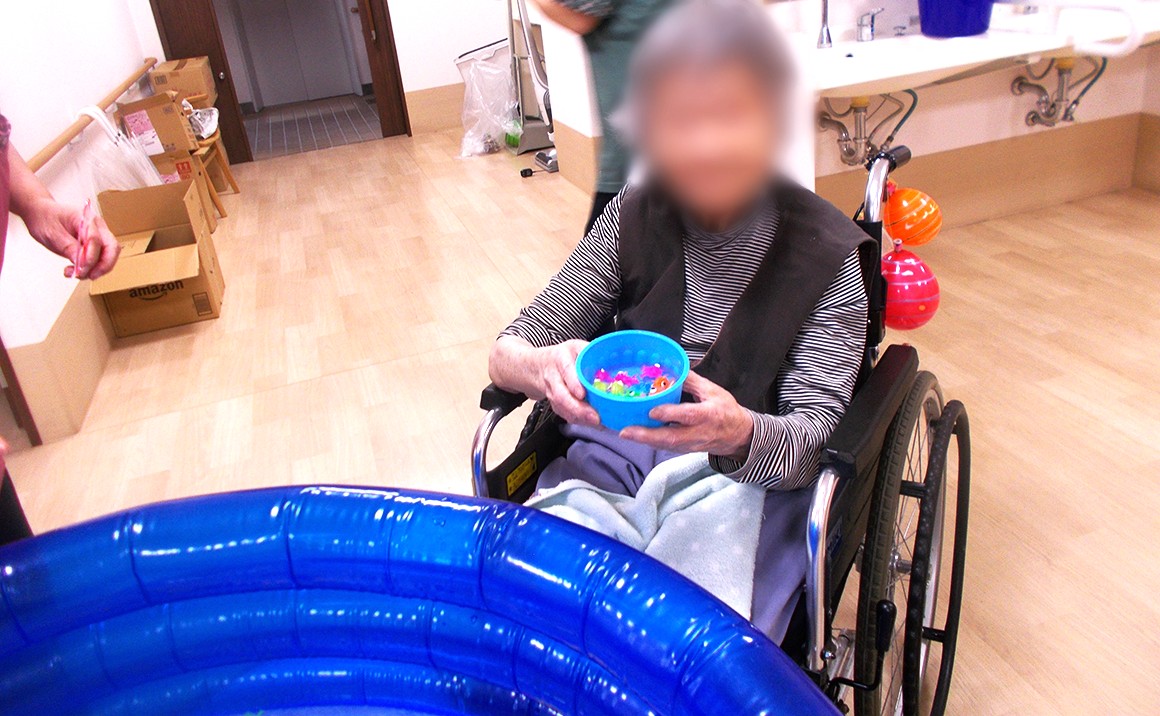 ヨーヨー釣り、輪投げ、金魚すくいを行い、よく笑顔を見せて下さり、昔話に花を咲かせておられてました。