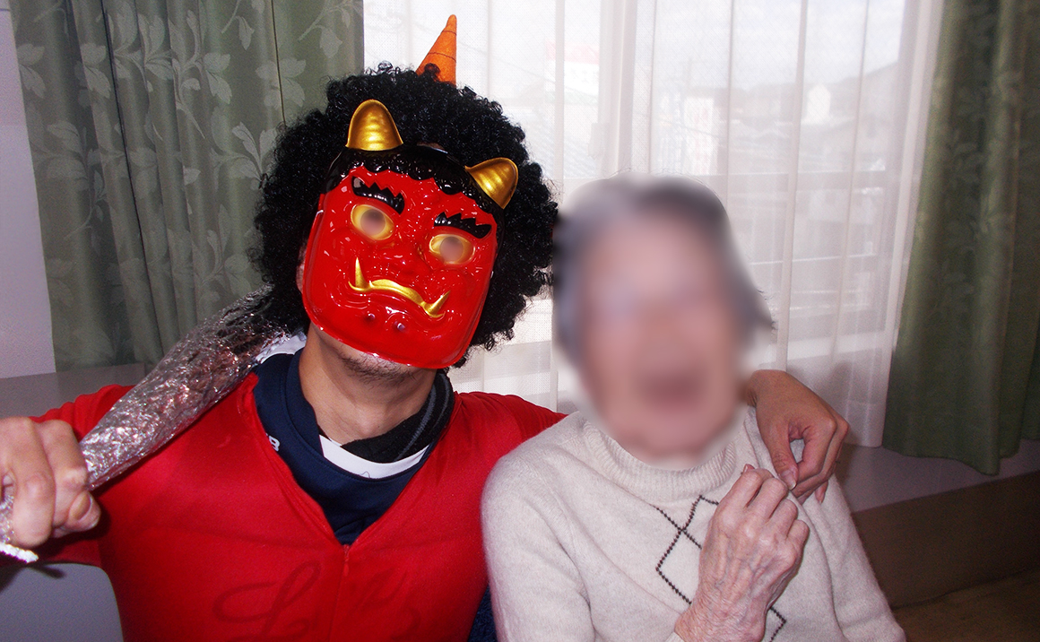 終わった後、鬼と一緒に写真をとられ、皆様いい笑顔を見せて頂きました。