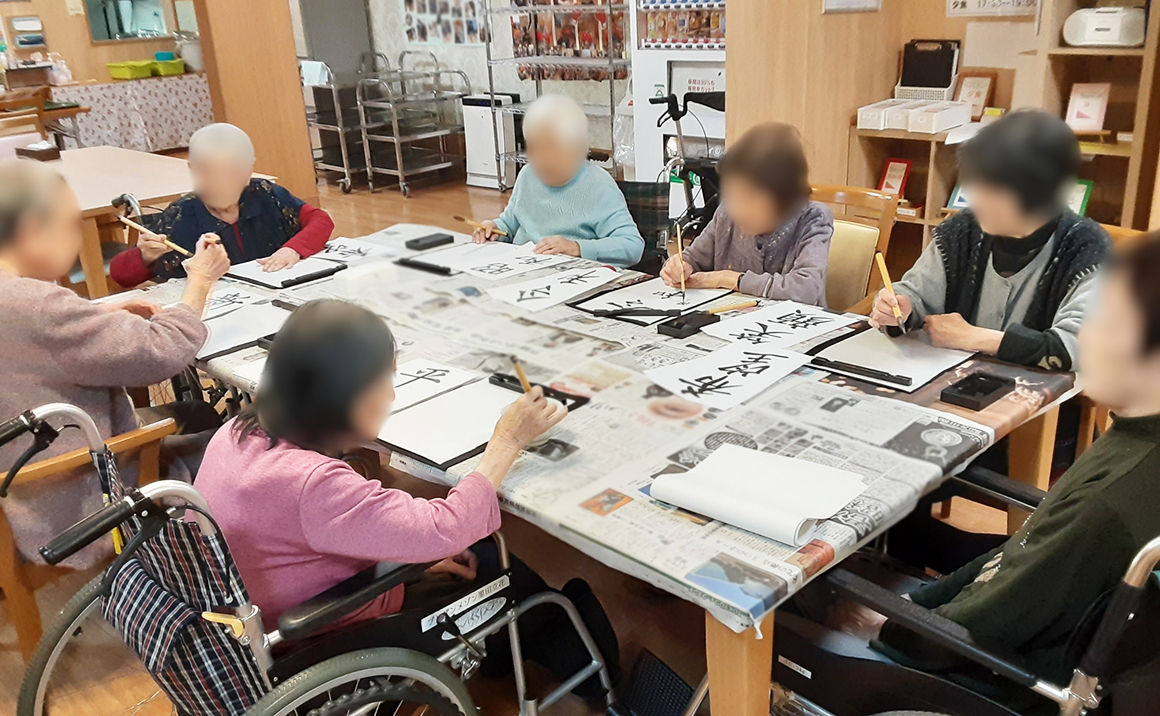 本日はお正月の定番、書初めの風景をお送りいたします。