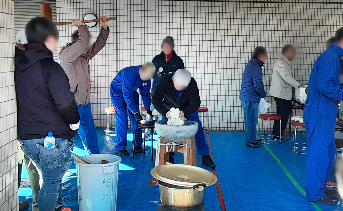 本日は施設の近くで町内会の方々が主催されている もちつき大会に利用者様方と一緒に参加してきました!