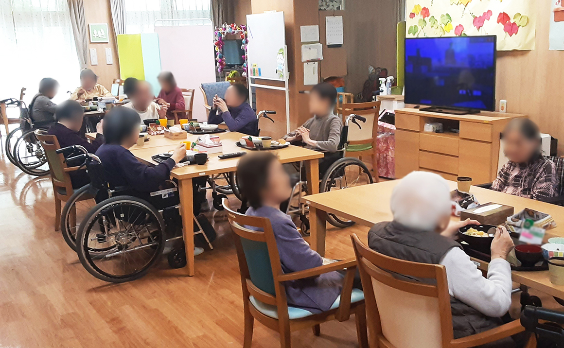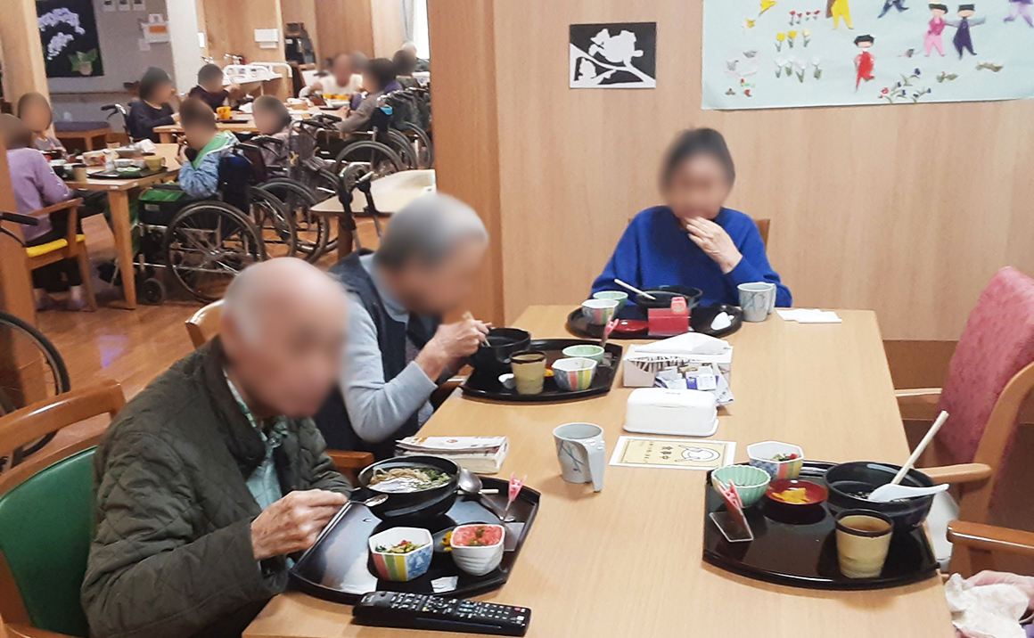 本日の東京は晴天、春先の天気という心地よい一日でした。 墨田立花では皆様が集まっての食堂でのお食事と食前の体操 に取り組んで頂きました!