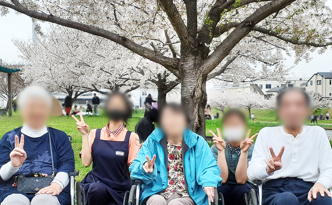 本日は雨もなく穏やかな天気でしたため皆様とともに 施設の傍を流れる旧中川沿いに咲く桜を見に行きました。 日曜ということもあってか子供たちや犬を連れて散歩中 の方に川をボートで進み運動中の皆様、また手元のバケツ をシロサギに狙われながら釣りをする趣味人の方まで 笑顔で挨拶を交わしてゆきました☆