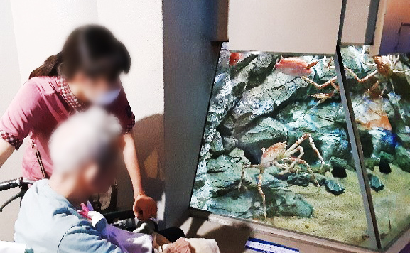 ご覧になられ、まじかに見る、エイやカメ、沢山のお魚たちに手を振りながら楽しまれてました。