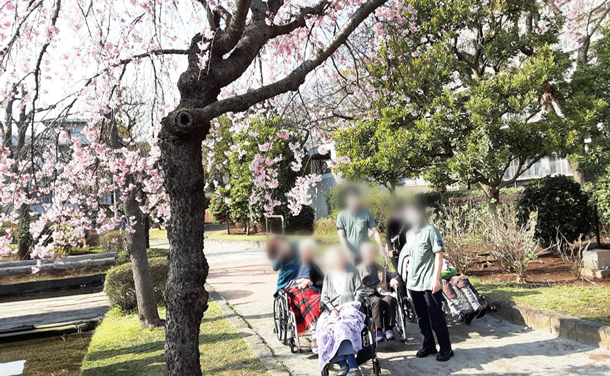 今年もお花見に出かけました。 近隣のせせらぎの里公園や神田川沿いを、車いすの方も徒歩の方もそれぞれのペースでゆっくりと散策しました。 「きれいね」「外に出ると気持ちがいいね」といった声も多く聞かれ、皆さま自然と笑顔に。 春の訪れを五感で感じていただけるひとときとなりました。