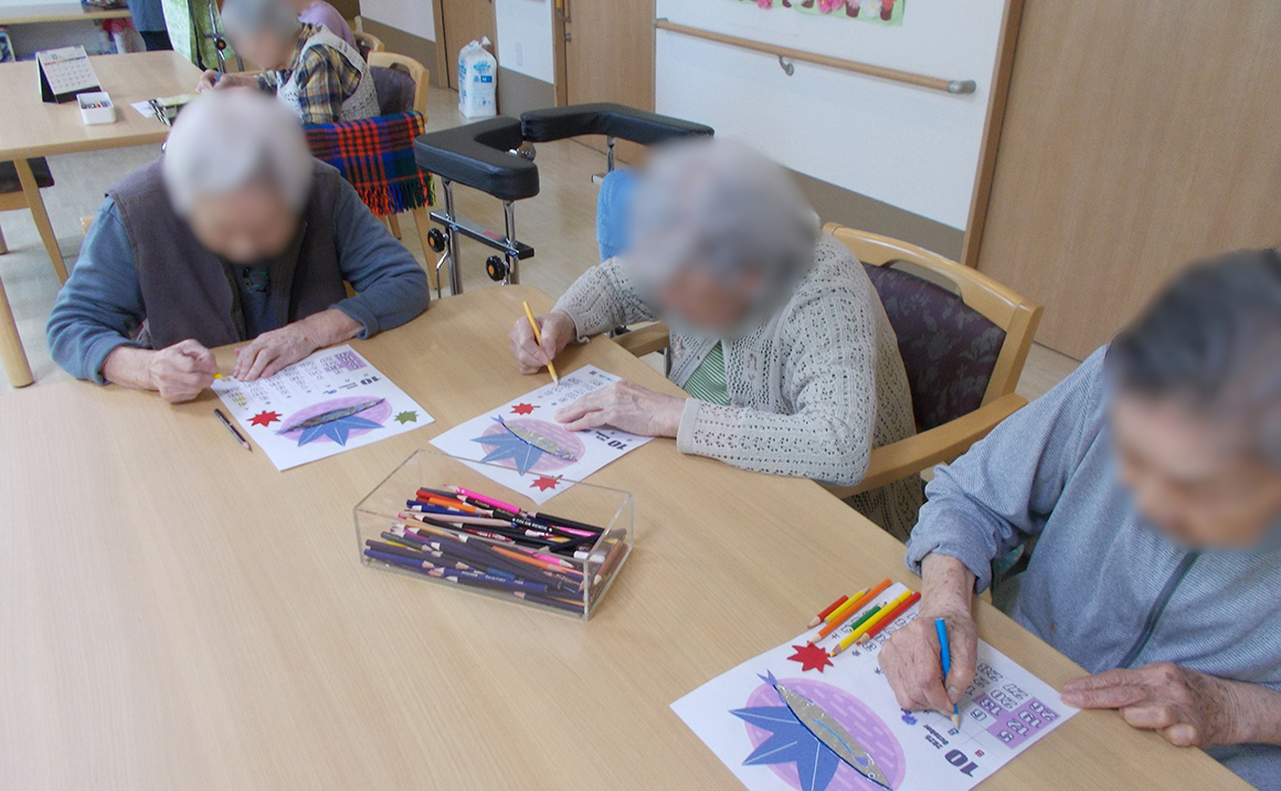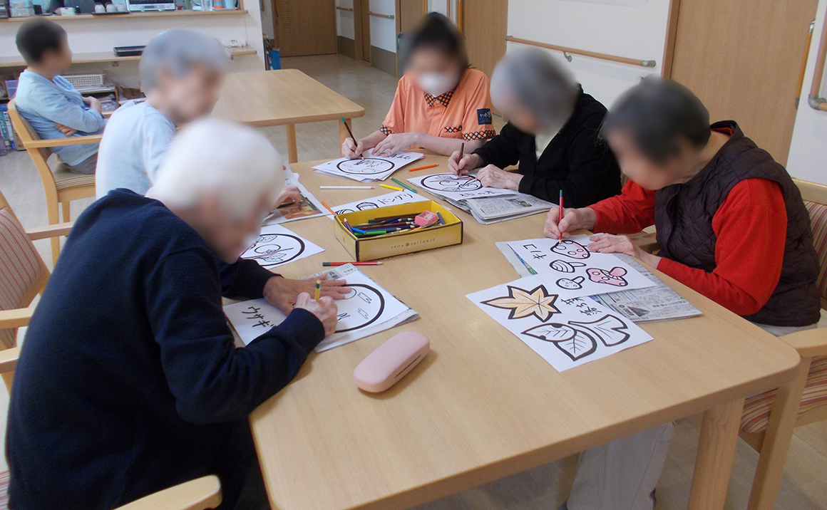 9月といえば、敬老の日のお祝い会ですねー。 たのしい家伊川谷有瀬もユニット毎に、敬老の日のお祝い会を開催させて頂きました。 お祝い会の日には、ユニットにより違いますが、おやつは和菓子を提供させて頂きました。 紅白まんじゅうや栗まんじゅうでお祝いして、皆様、美味しかったと笑顔がいっぱいでした。 また、カレンダー作りと壁画用の塗り絵には、何色を塗ろうかなと、真剣に取り組まれていました。