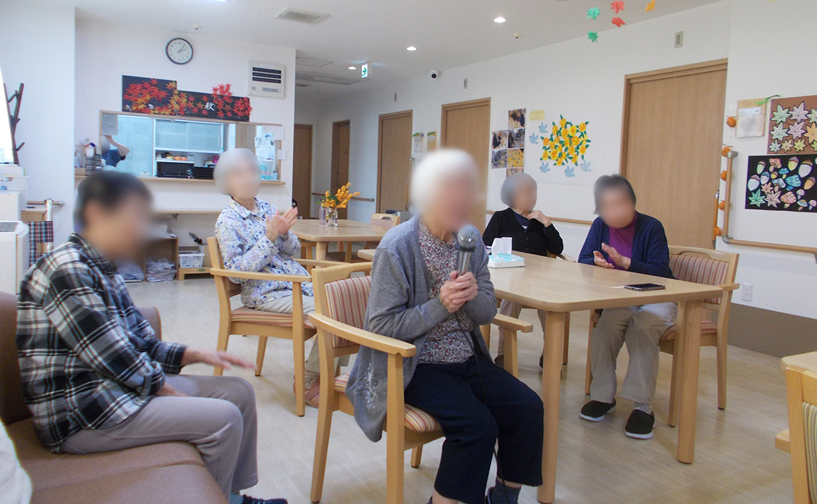 ユニット3では、皆さんでカラオケを楽しまれました。「高校三年生」や「リンゴの唄」を熱唱され、大いに盛り上がっていました。
