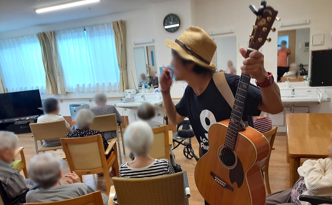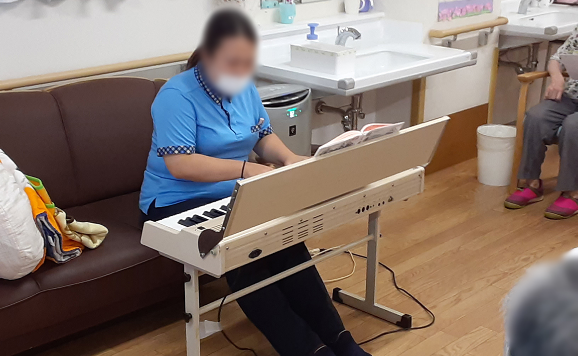 音楽会は1階で開催。職員がキーボードを演奏して、利用者様に歌っていただくスタイルです。