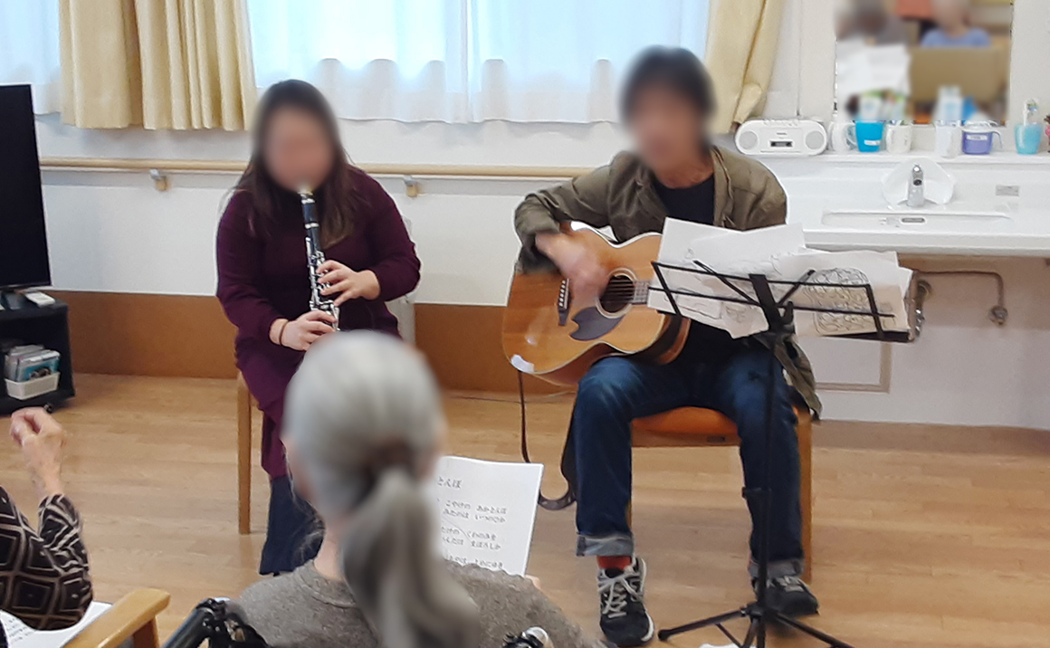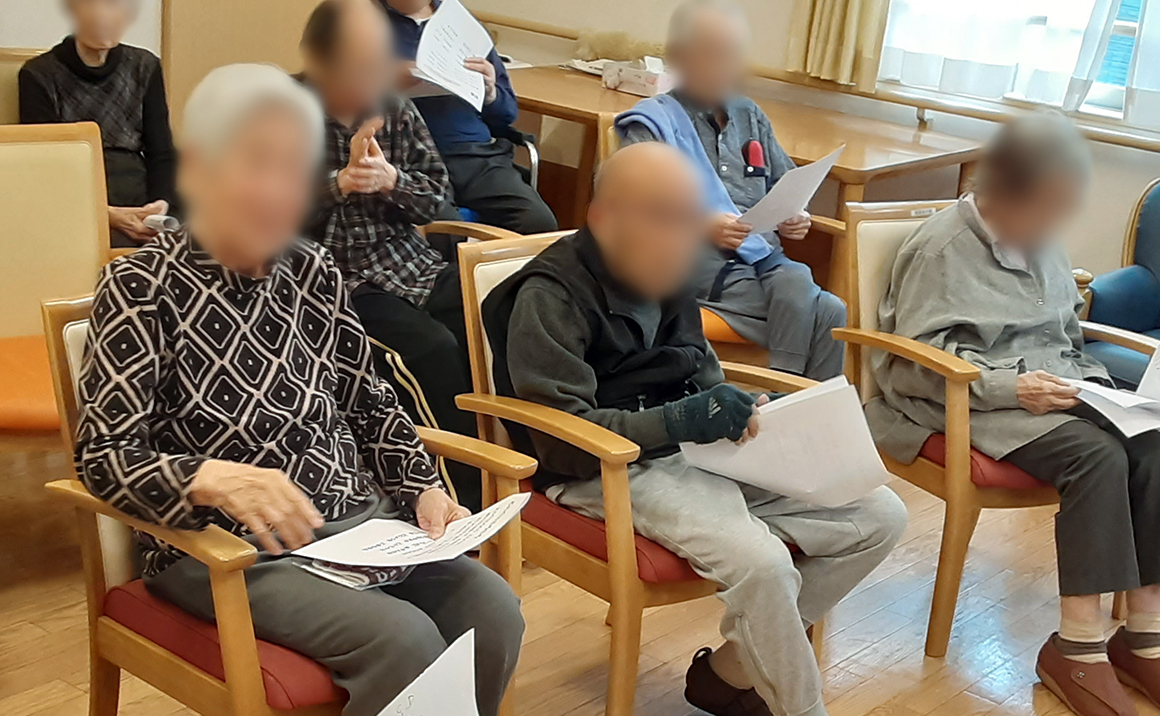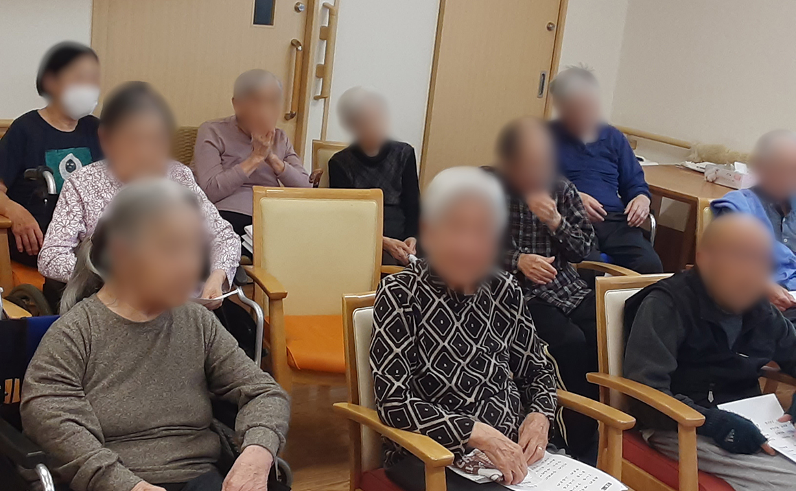 11月13日、西ノ京の1階で秋の音楽会が開催されました。 職員の演奏にあわせて秋にちなんだ歌を三曲歌いました。 紅葉、どんぐりころころ、あかとんぼ…。 しみじみと、のびのびと、手拍子でもりあがりながら、参加された皆様、歌声を響かせていらっしゃいました。 西ノ京では定期的に音楽イベントが開かれています。 楽しく歌うことで心の健康につながるように、これからも新たなイベントを企画中です。