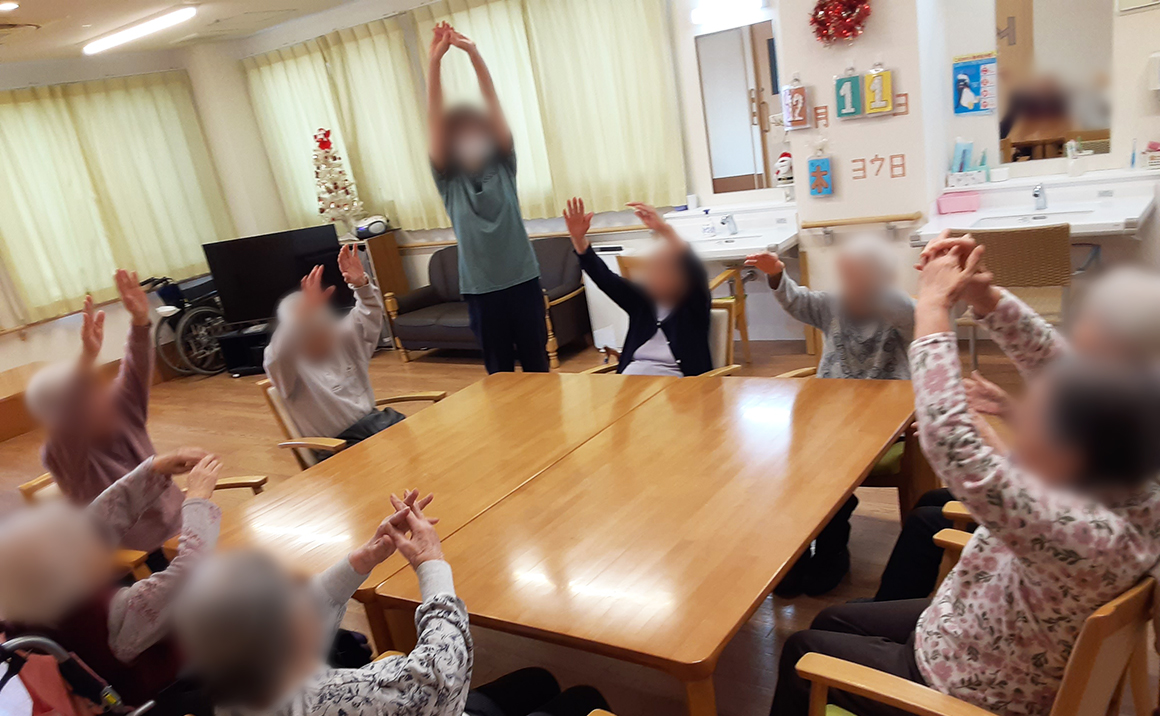 たのしい家西ノ京の皆様は日々、様々なレクリエーションを行って体力作りに励んでいます。