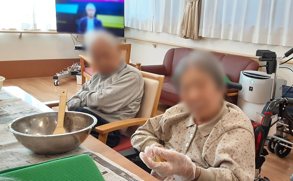 秋の終わりにレクリエーションとして、スイートポテト作りを行いました。