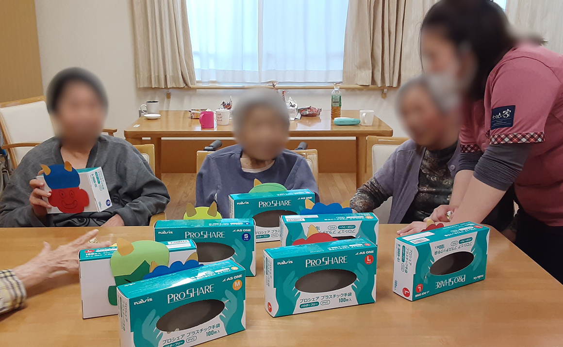 節分は、邪気を払い無病息災を願う大切な行事です。 今年も健康で笑顔あふれる一年を過ごせますよう願いを込めて、鬼に豆を模したお手玉を投げました。 今年も「鬼は外!福は内!」の元気な掛け声とともに、皆さまの笑顔があふれる一日となりました。