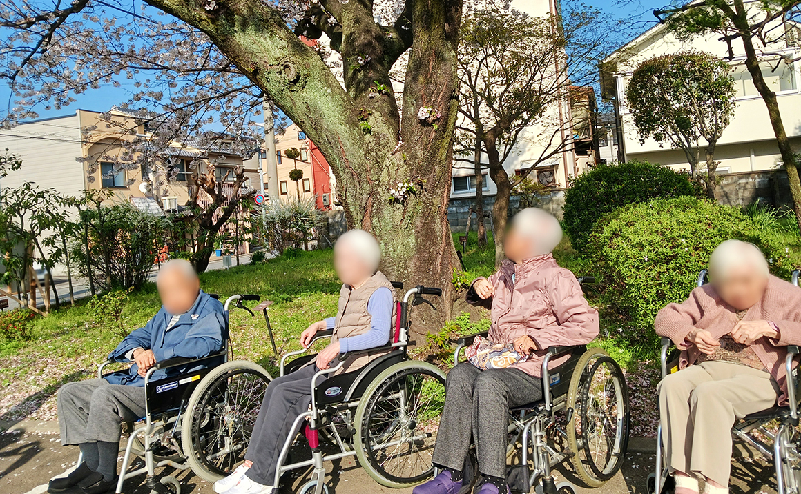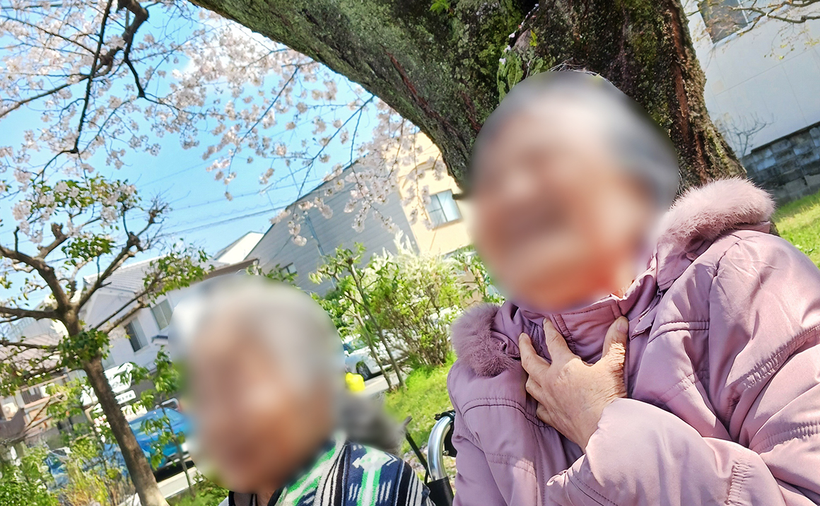 4月は例年より早く暖かい日が多くなり、桜が一気に咲き始めました。 たのしい家西ノ京の皆様にも、ぜひ春を感じてもらいたい!ということで、近所の桜を見に散歩に出かけました。 「風がちょっと寒いわ」と言いながらも、暖かな日差しを浴びての散歩に、皆様揃ってうれしそうな表情を浮かべておられました。 たのしい家西ノ京の周辺には、立派な桜が咲く場所があり、毎年楽しみにされている方もいらっしゃいます。 「今年も満開の桜を見ることができてうれしい」と、桜に負けないくらいの笑顔を見せてくださいました。
