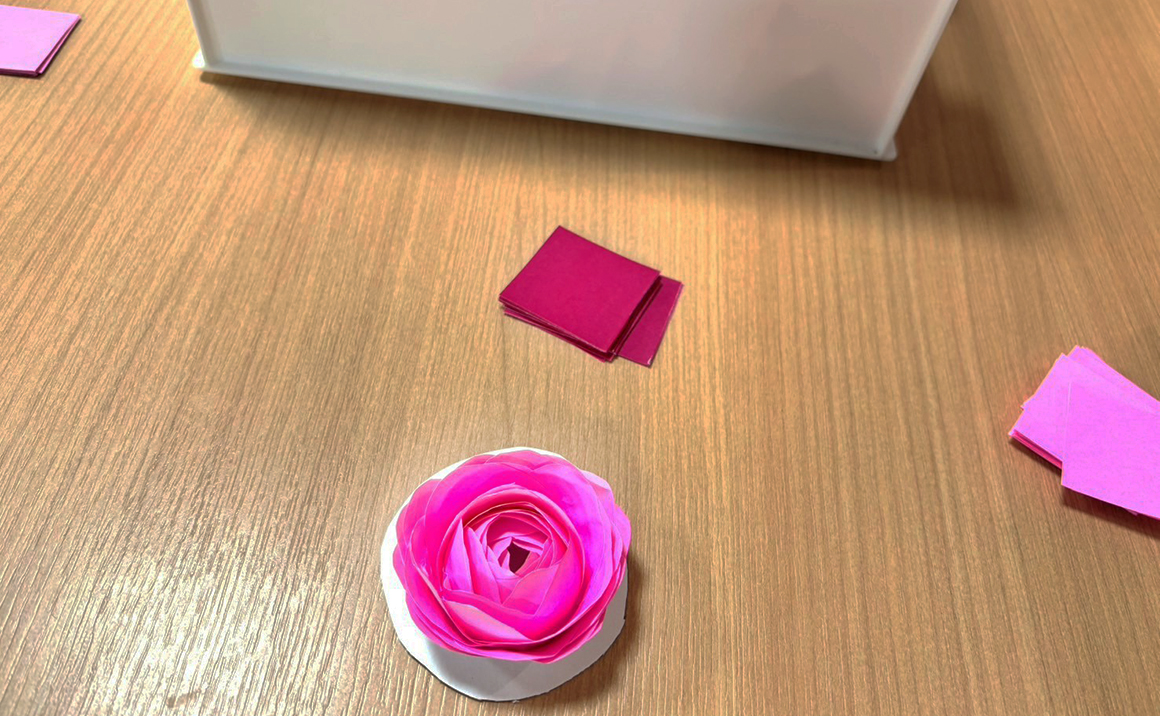 今回は皆さんと一緒に折り紙でバラの花を作ってみました。