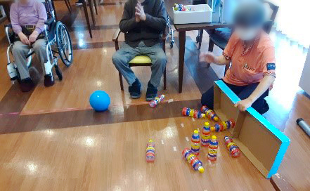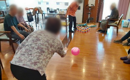 ストライクが出たときは投げられた方だけではなく、周りで見ていたご利用者様、職員もみんなで喜んで一体感が生まれました!
