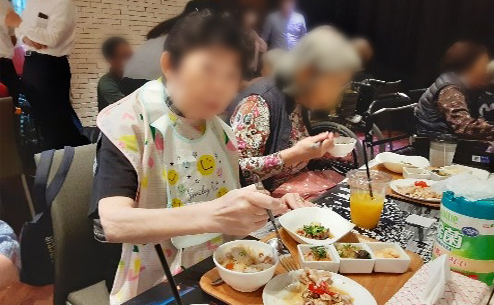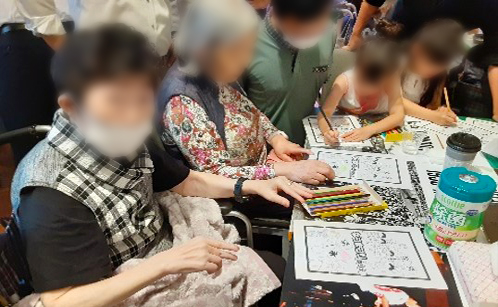 2ヶ月に1度、開催しております日本橋の三井タワー2階にあります『アゴラカフェ』にて、昼食とキッズダンスショー&ぬり絵イベントに参加して参りました。 今回、プレザングラン江東亀戸からは1名の方が参加されました。 本日の昼食は、枝豆入りの五目御飯・うざく・豚ロースのしゃぶしゃぶ等が出ました。 ご利用者様もいつもはなかなか召し上がることができないものが食べられて喜ばれておりました! キッズダンスショーや先生のポールダンス、最後に子どもたちと交流しながら一緒にぬり絵をしました!