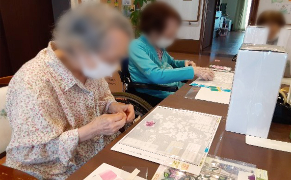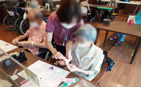 ご参加されたご入居者様は一生懸命シールをちぎって貼られ、皆様ぞれぞれ素敵な作品が完成しました!