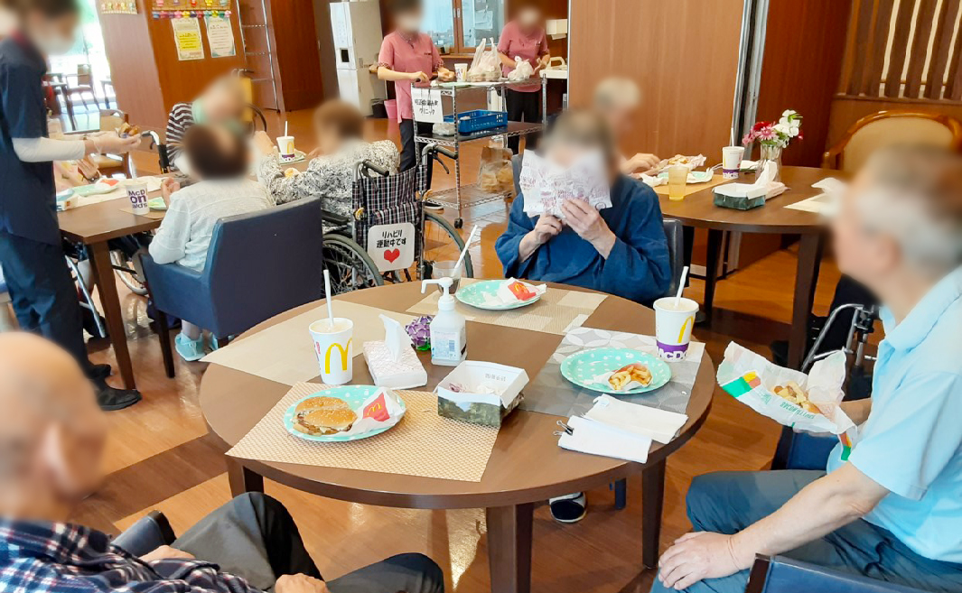 久しぶりにハンバーガーやポテトを美味しそうに召し上がっておられ、「久しぶりに食べられて美味しかった!」とのお声もいただきました。