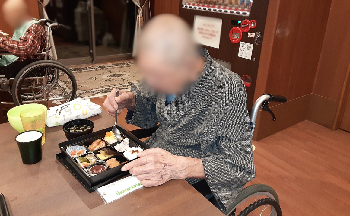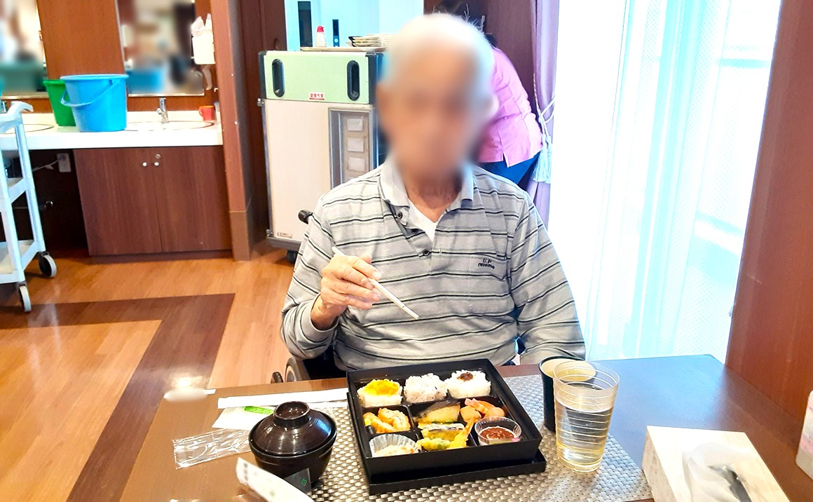 プレザングラン江東亀戸では月に一度、お取り寄せお弁当の日があります。 今月のお弁当は、『明治座の幕の内折詰弁当』でした。 「彩り」とのメニュー名の通り、銀鱈西京焼きや天ぷら、ティラミスなど九つの彩り豊かな味わいを一折りに詰めたお弁当でした。 見た目は華やか、お味も良し、量も丁度よく、贅沢な気持ちを味わえた気がしますね。