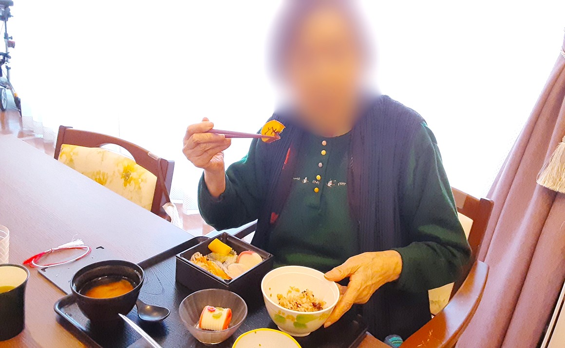 あけましておめでとうございます。 本年もよろしくお願いします。 1階ロビーには、入居者様に今年の抱負や願いごとなどを書いて頂いた年賀状を飾りました。 98人分を飾ると圧巻です。 おせち料理もご用意し新年をお祝いしました。