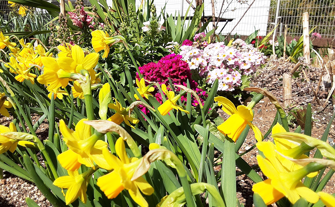 プレザングラン江東亀戸の春めいてきたテラスの様子です。 たくさんの花が暖かい陽に向かってぐんぐんと成長してます。 もうしばらくするとチューリップが咲く頃です。 テラスがたくさんの色で賑やかになって、毎日見に来る入居者様もいます。 皆さん、春が待ち遠しいですよね。