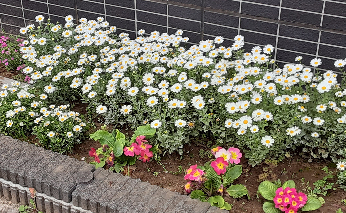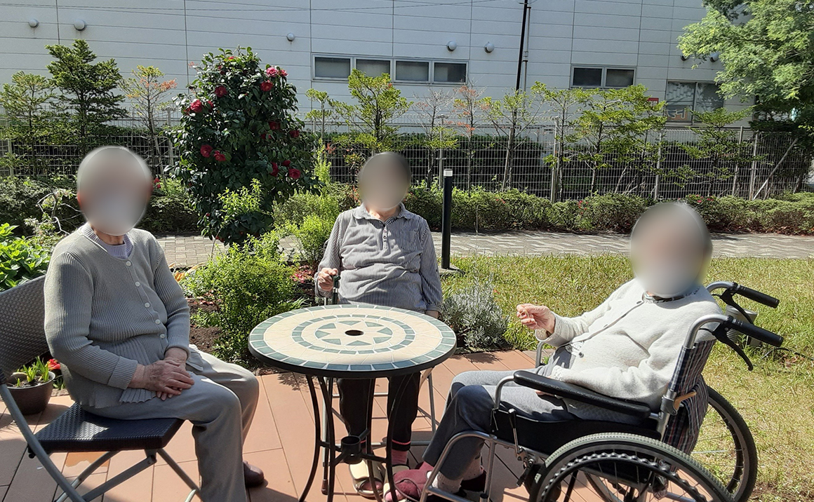プレザングラン江東亀戸のテラスの様子です。 たくさんの花々がきれいに咲いて、賑やかになっております。 四季折々の花が見れるこのテラス。 入居者さま同士やスタッフとの会話も弾む憩いの場になっております。 ちょっとした散歩道になっており、歩くリハビリにもなっている様です。