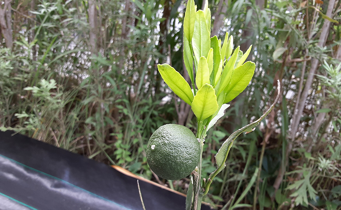 追伸:庭に植えたミカンの木に季節外れのミカンが出来ていました!