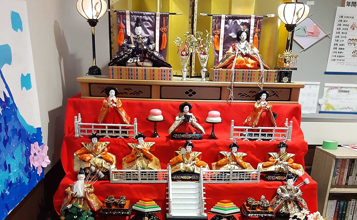 また、施設玄関入った正面に、ひな人形の7段飾りがあります。