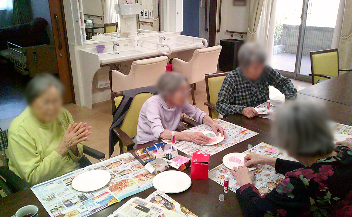 3月はひな祭りのイベントを実施しました!! 当日は、お雛様の仮装をしてうたを歌ったり、お昼ご飯のちらし寿司作りをしました。 普段、写真を撮られるのを嫌がる利用者様もノリノリで写真撮影させていただきました!