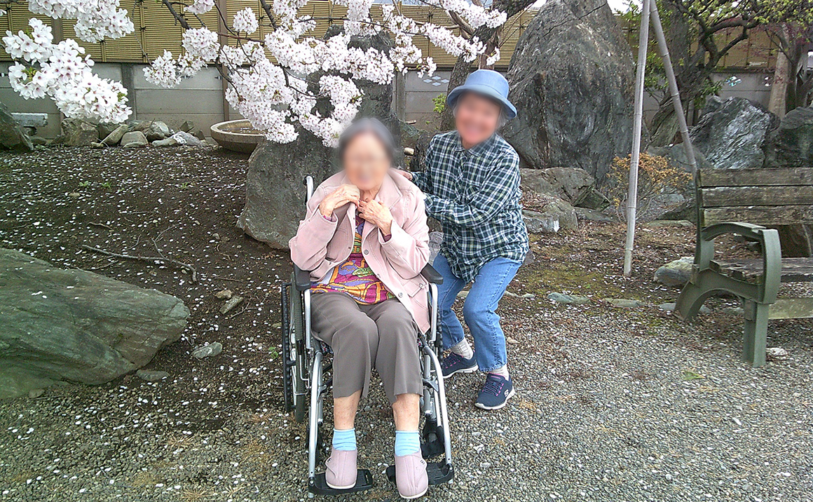 お散歩の時間には、歩いて行ける距離にある大きな桜の木を見に行くこともありました。