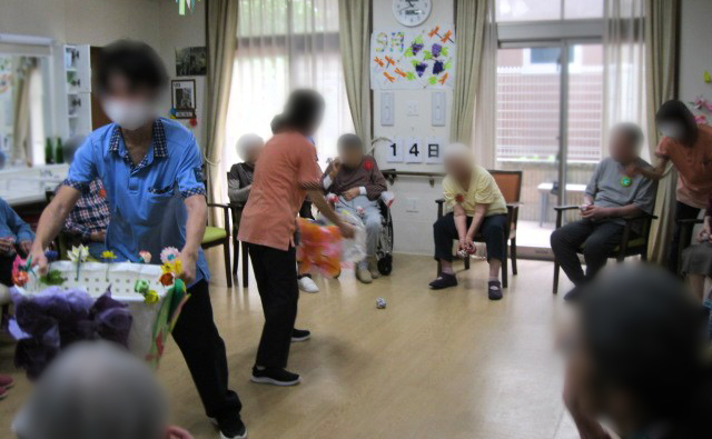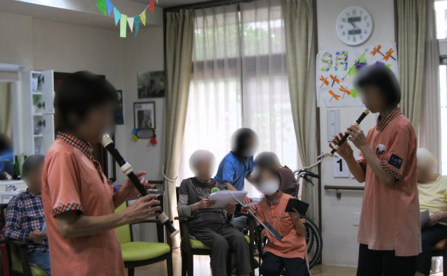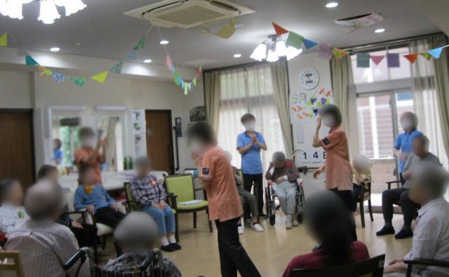 9月は敬老会イベントを行いました。 職員3人で1人がピアノ、2人でリコーダーで演奏会をしてくれたり、皆様で歌を歌ったり、玉入れをしたりしました。 食事はてんやで天丼を注文し皆様ペロっと召し上がりました。おやつも可愛いケーキを召し上がられ、楽しい1日になりました!