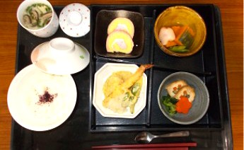 本日の昼食は、皆さま大好きてんぷら入り松花弁当でした。 彩り豊かな折箱の中にはえび・おくら・さつまいもの天ぷらをはじめ、煮物やおひたし、茶碗蒸しなど 季節の味覚がぎゅっと詰まっています。