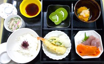 松花弁当には、天ぷら、刺身、デザートなど見た目も楽しんでいただける内容となりました。 「少しずつ食べられるのがうれしいね」との声も聞かれ」、ゆったりとした時間となりました。