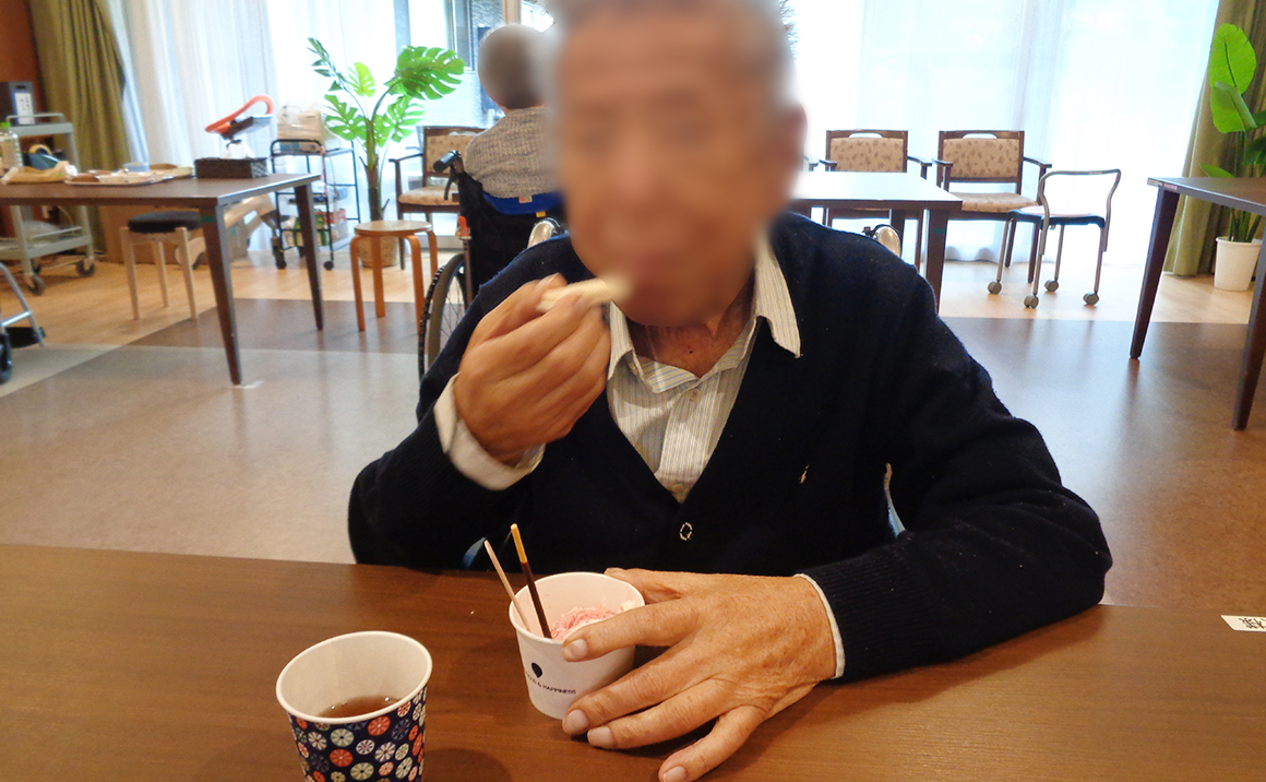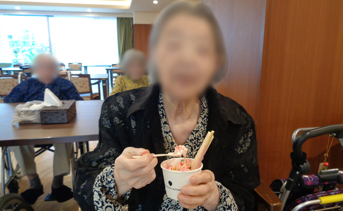 業務用のソフトクリームメーカーをレンタルして、ご入居者様に 作りたてのソフトクリームを召し上がっていただきました♡ 施設では初めての試みだったのですが、スタッフの一人が、 まるでプロ級のクルクル巻きを披露してくれました(^^)/ 食べた全員が幸せになれる『ソフトクリーム屋さん』を開業した一日でした。