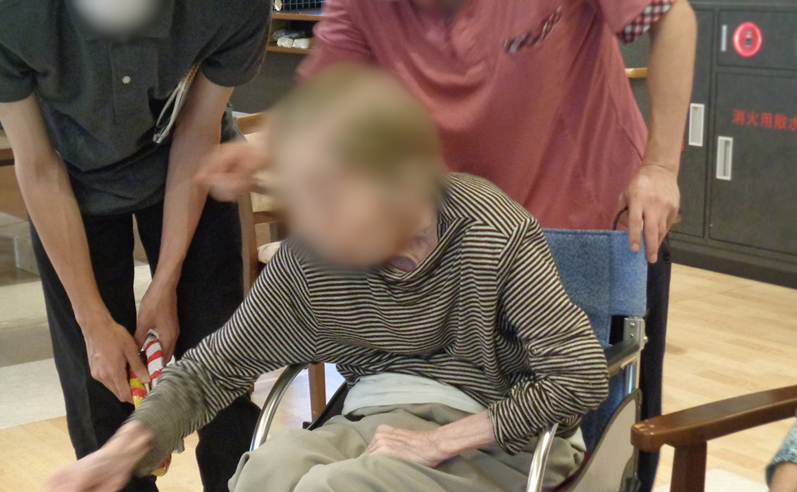 ご入居者様は、お孫さんより若い学生達に応援されながら、楽しそうに