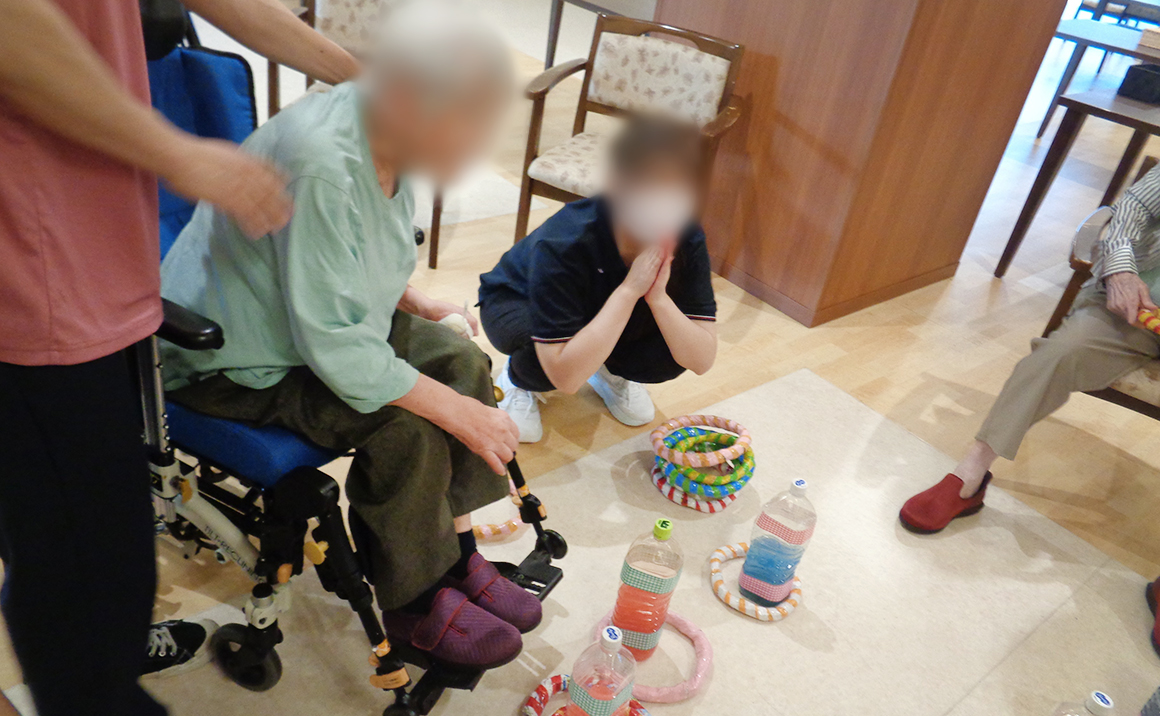 体験実習生さんと『輪投げ』のレクリエーションをするご様子です。