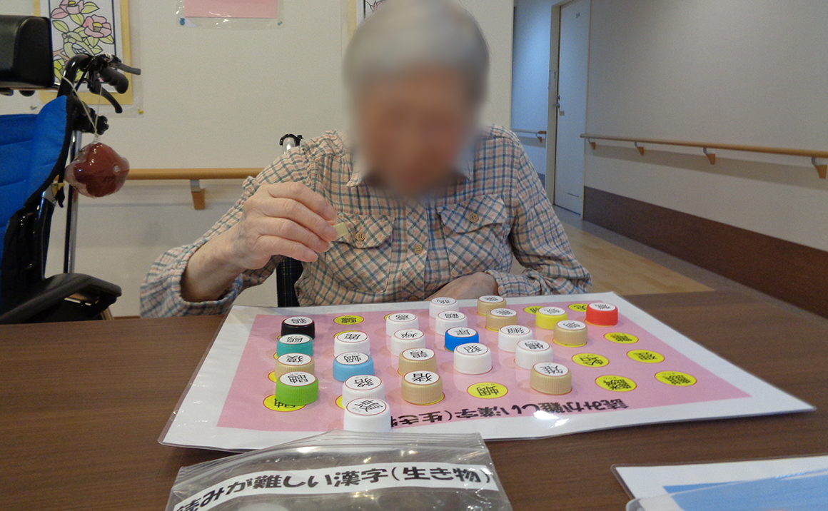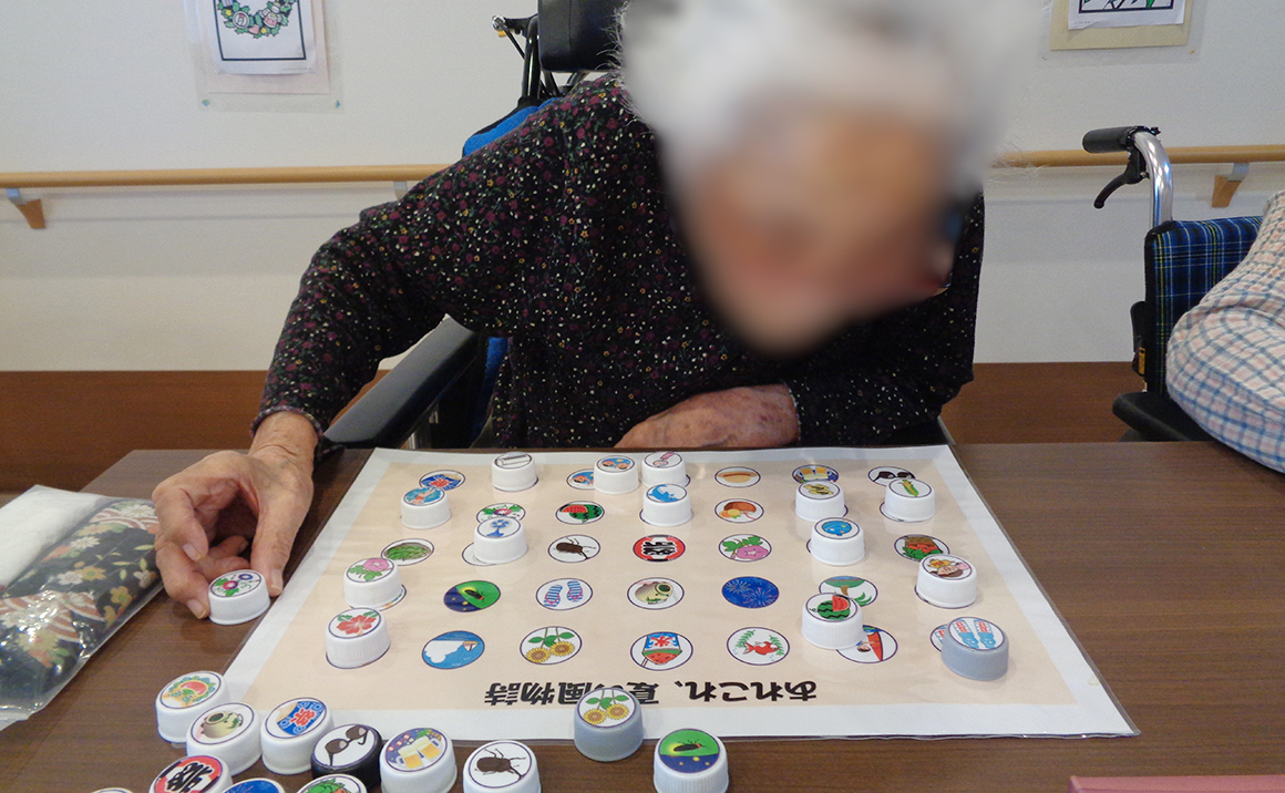 台紙の絵柄の上に、同じ絵柄の駒を置くパズルで、スタッフが