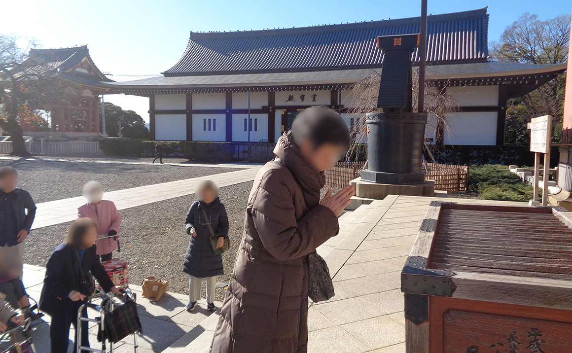 池上本門寺境内にあるレストラン今半で『すき焼き御膳』ランチを企画しました。 ゆったりと食事を愉しんだあとは、本殿に参拝です。 スタッフ4人体制でサポートしながら、ご入居者様に広い境内を一緒に歩いて いただきました♡