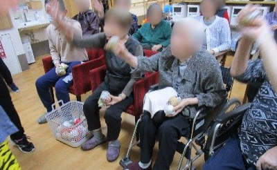 鬼の登場に皆様のやる気も最高潮になり、豆に見立てた新聞紙ボールで全力投球を見せて下さいました☆