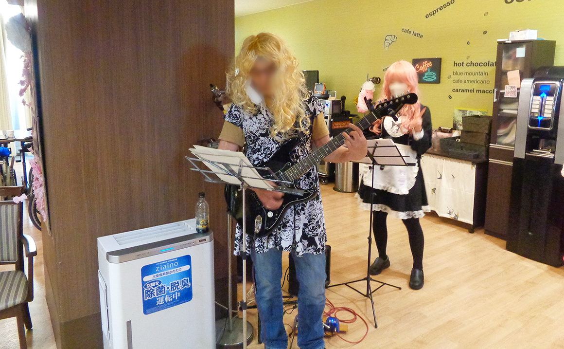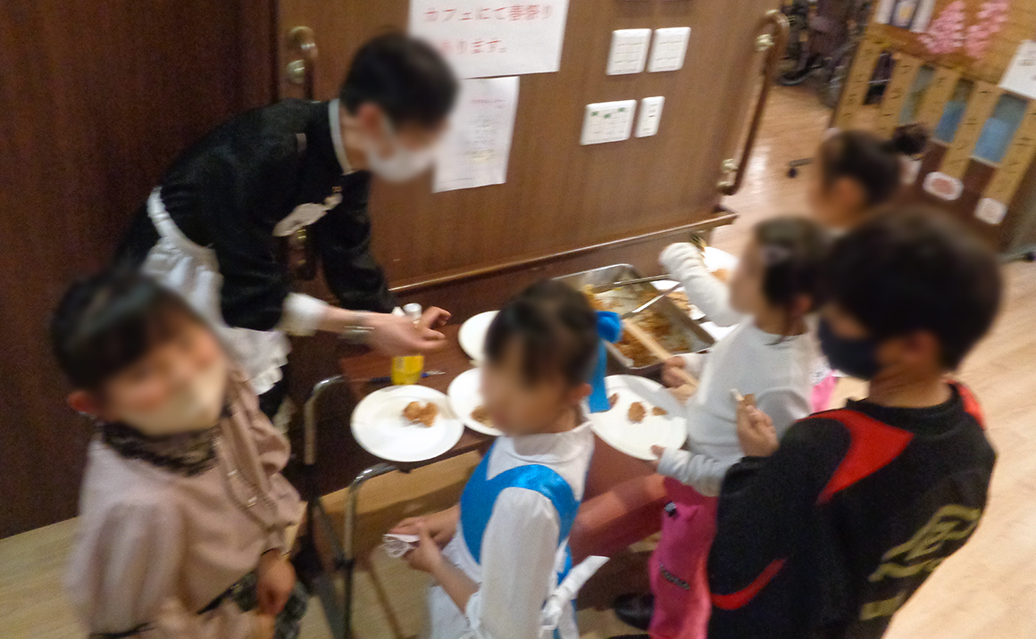 スタッフによる楽器演奏のBGMと仮装した職員による食事や飲料の提供があり多くの笑顔が生まれました。