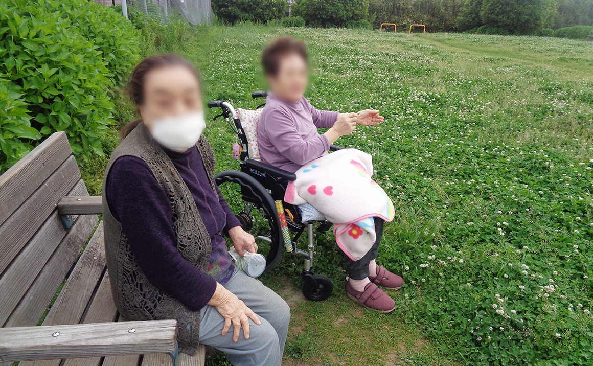 プレザンメゾン朝霞では様々なレクレーションを展開しております。 今回は近所の公園までお散歩してきました。 当日は天気もよく気温も頃合いでした。 今回は入居して間もない方がご参加され『気持ちいわね~』と気分転換となりました。 さらに他の入居者様と一緒に散歩されたことで他者交流につながり和やかな雰囲気でお過ごしになりました。