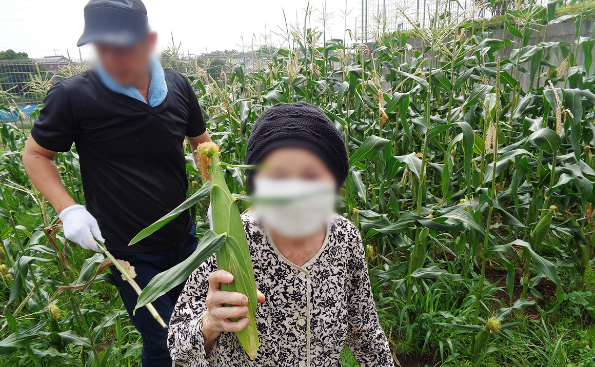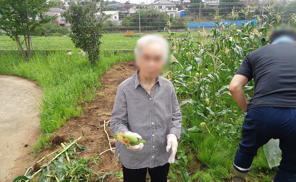プレザンメゾン朝霞では様々なレクリエーションを展開しております。 今回のレクリエーションは4月に当施設での庭にて「とうもろこし」を植えて7月に入居者様と一緒に収穫を行いました。 入居者様からも「楽しかった~」「立派なとうもろこしだね~」と素敵な笑顔と楽しい光景も見られました。 収穫後は職員と入居者様とで美味しくいただきました。