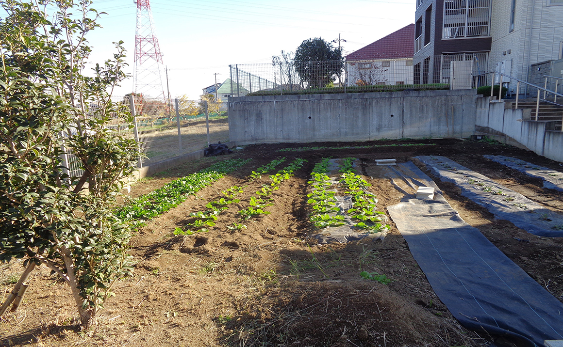 広大な庭を活用した職員主導による朝霞ガーデンについては現在開拓中です。現在はイチゴと大根を育てています。