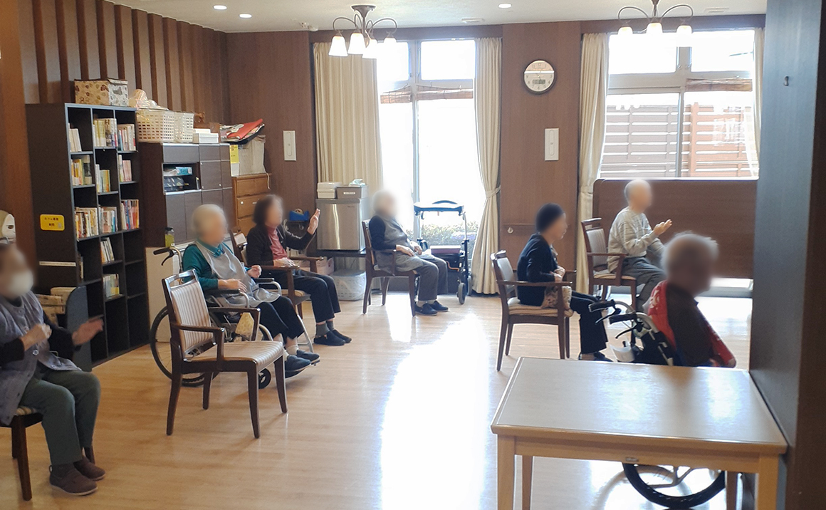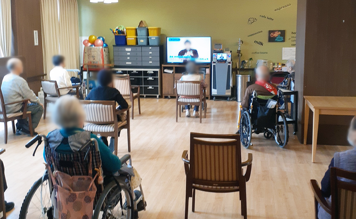 慌ただしい年末年始を終えて皆様いかがお過ごしでしょうか 今回は施設生活の風景の一つとして集団体操のご様子を紹介いたします。 入居者様は自主的に参加くださり身体の運動や口腔体操を実施しております。 音楽や画像に合わせて体を動かし体力の維持やお食事の飲込みの準備体操をされています。 体操で一汗かいた後には水分提供を行い脱水予防を図っています。 ご見学の際にはぜひ一緒にご参加ください。