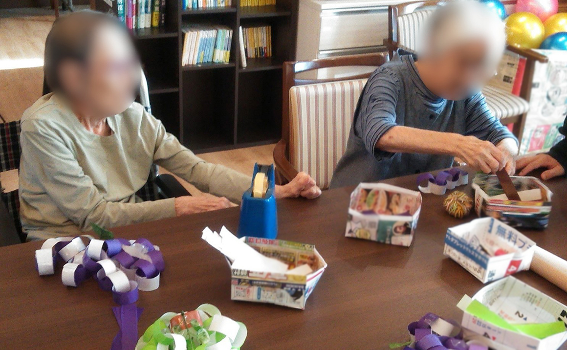 今回は利用者の皆様と一緒に、秋の味覚『ブドウ』をテーマにした工作を楽しみました。 色とりどりの紙を使って、立体的でかわいらしい作品が完成しました。 皆さんの個性が光る、素敵なブドウが並びました。 工作の過程ではお仲間同士の会話もたくさん実り和やかな雰囲気がありました。 ご来館の際には秋を感じる作品をご覧ください。