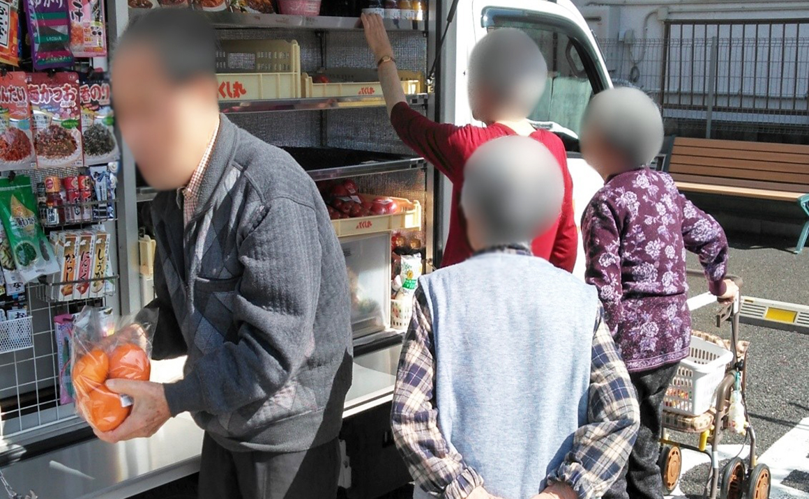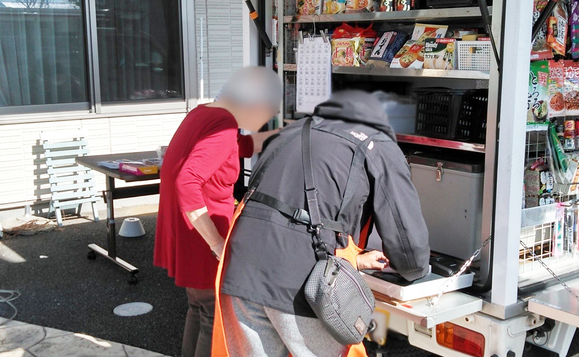 お買い物とひなたぼっこがセットになるだけで、いつもの移動スーパーが少し特別なものになりました。