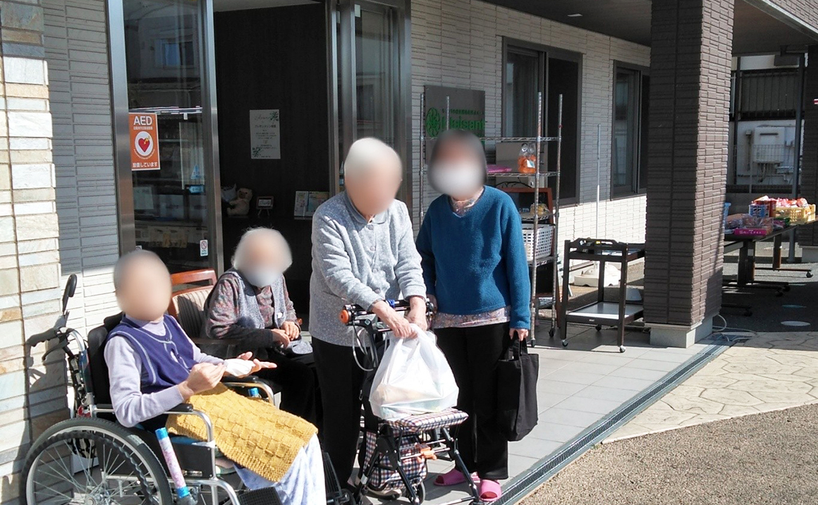ぽかぽか陽気の中、入居者の皆様は「今日は、外で買い物ね」と嬉しそうな表情です。