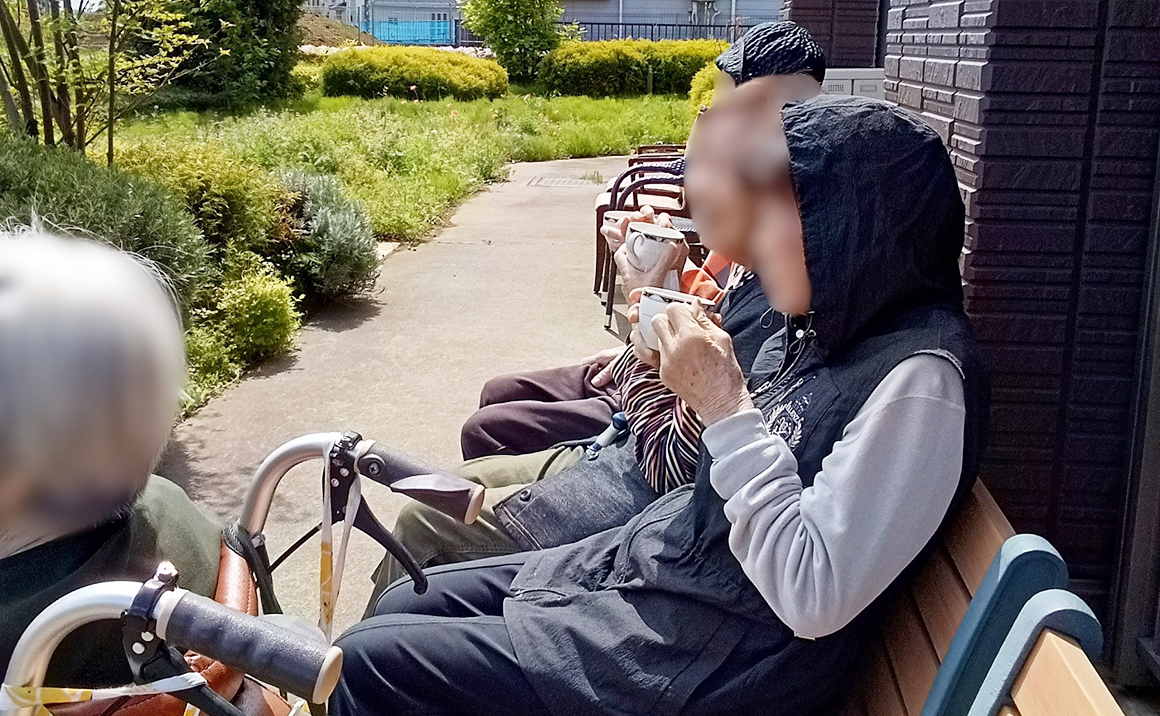 今日はお天気に恵まれ、ぽかぽかと心地よい陽気でした。 そこで、ご入居者と一緒に、中庭で日光浴を楽しみました。 春の風がそっと頬を撫で、皆さま自然と笑顔に。 「外に出ると気持ちがいいね」「お花が咲いているわね」と、ゆったりとした時間を過ごされていました。 入居して日が浅い方もお仲間同士の会話が弾んでおり、優しいひと時が流れました。 これからも、無理のない範囲で季節を感じられる活動を取り入れていきたいと思います。