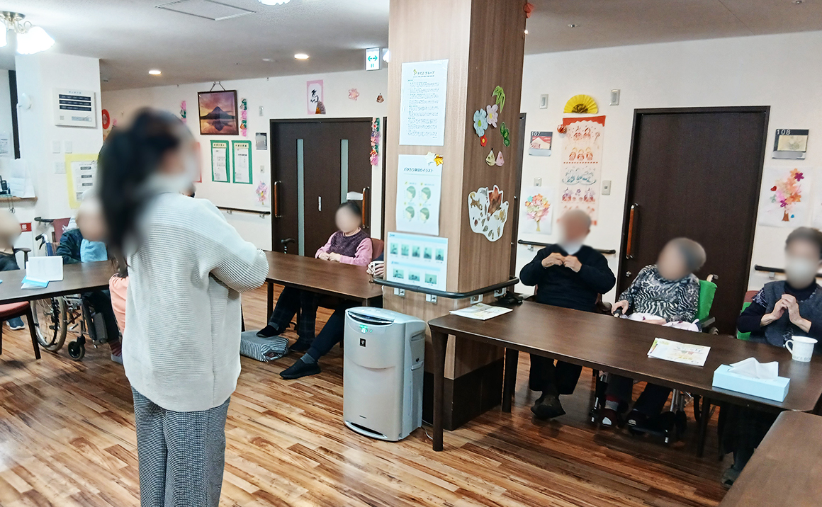 本日、小規模多機能の方で「座ってできるヨガ」を講師を招いて行っていただきました。 そのイベントにグループホームの入居者様数名に参加していただきました。 皆さんヨガに興味津々で真剣に、時折笑いながら取り組んでいました。また来てもらいますね。