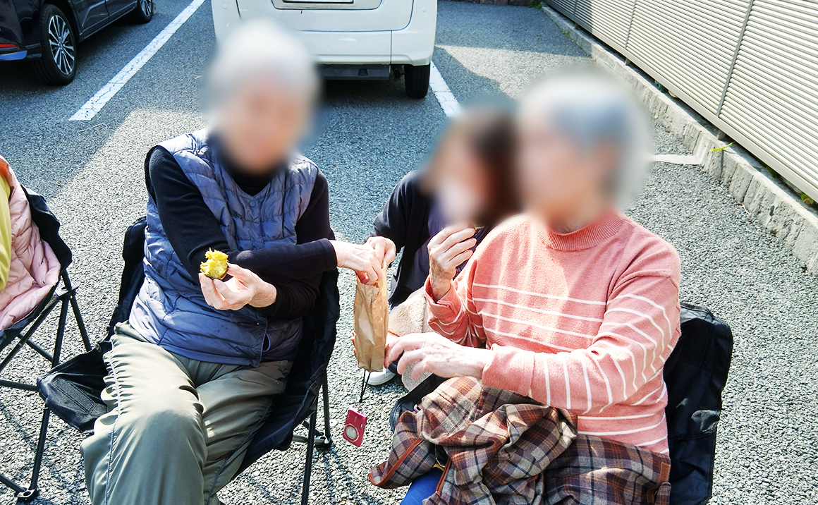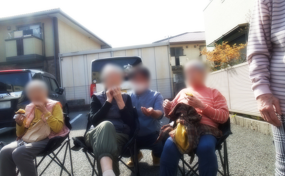 4/3、お誘いいただき、代表で2名の入居者様と「たのしい家金楽寺」にお邪魔し、石焼きいもを食べに行ってきました。 お二人とも着く前から「いや~、楽しみ」と仰っておられ、食べている時も笑顔満開で本当においしそうに頬張っておられました。 たのしい家金楽寺の入居者様、職員、お世話になりました。また、何かあればお互い行き来しましょうね。